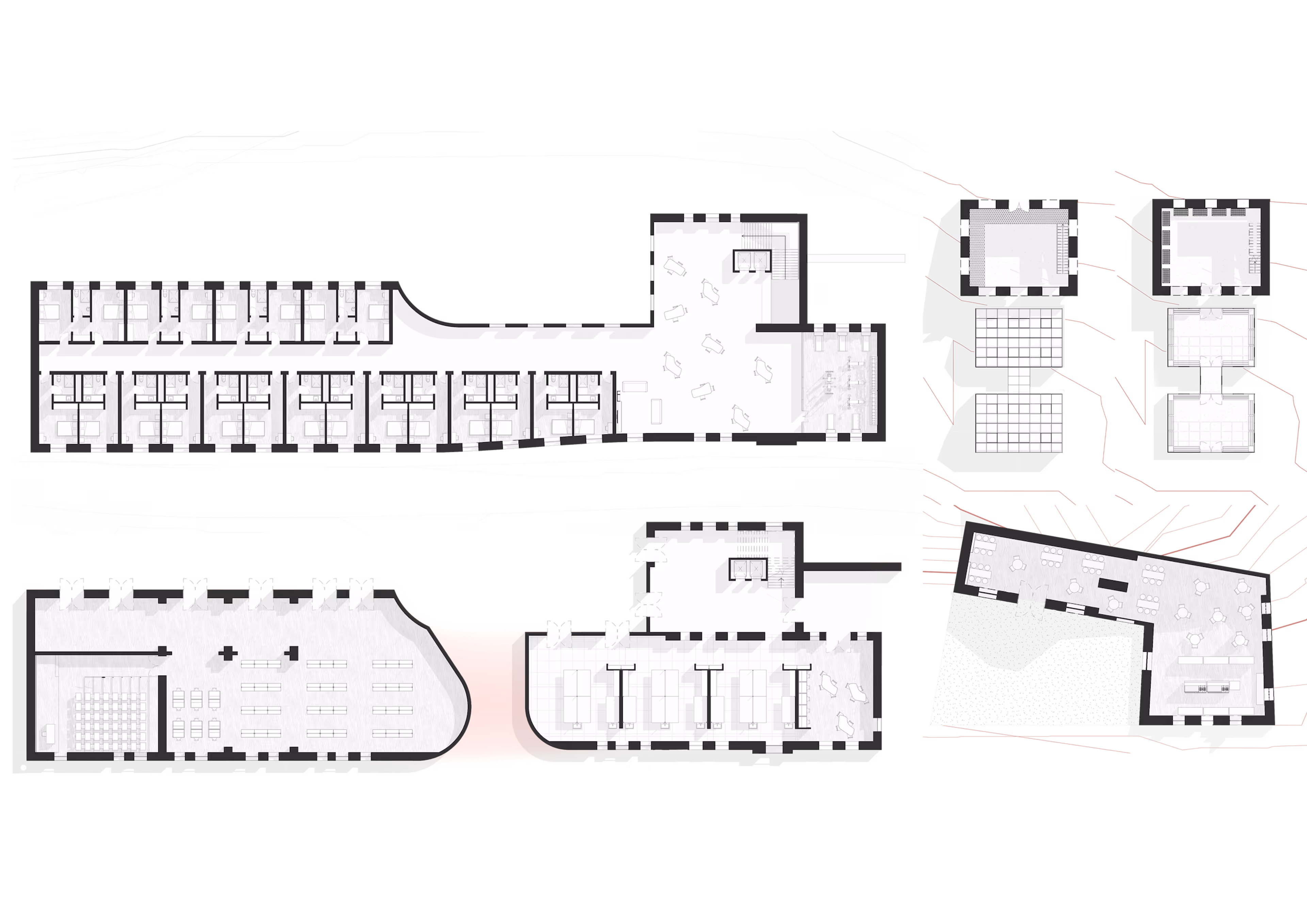 A key aspect of the project is the 3D reconstruction of the existing structures, inspired by the confluence of the Segre and Cinca rivers at Aiguabarreig Segre-Cinca. By intertwining the primary axes of the roofs, the central buildings are reimagined to create a distinctive and innovative architectural space.