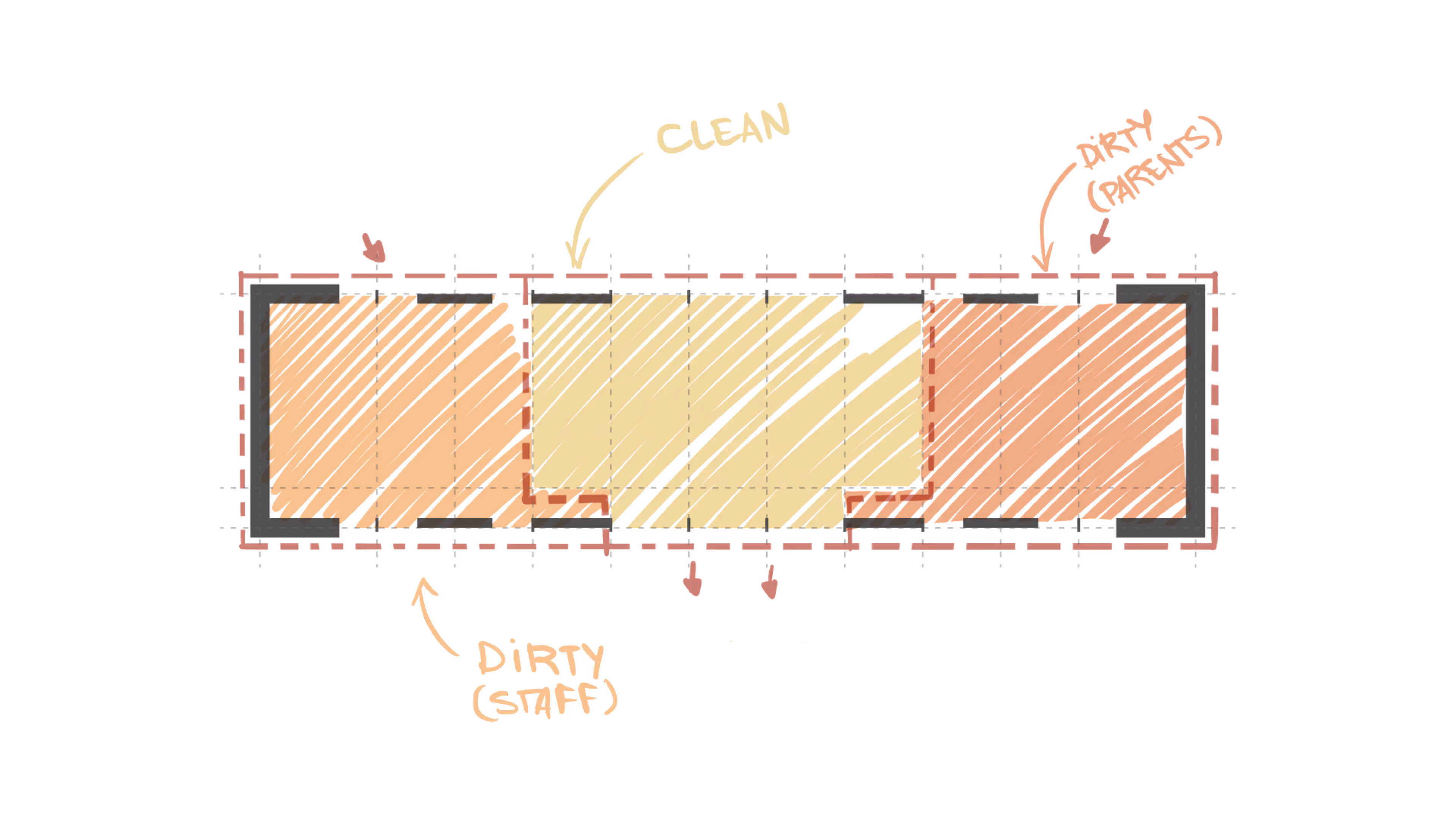 The project is structured around a minimal, modular 12-metre-long frame, scalable into a 4x12-metre corridor that defines both spatial and structural directionality. A central corridor connects all spaces, pointing toward and embracing the main open room as the heart of the nursery, while looking out to a vibrant courtyard. Thick, load-bearing walls align unidirectionally to enable large spans for children’s primary spaces, separating them from adult areas.